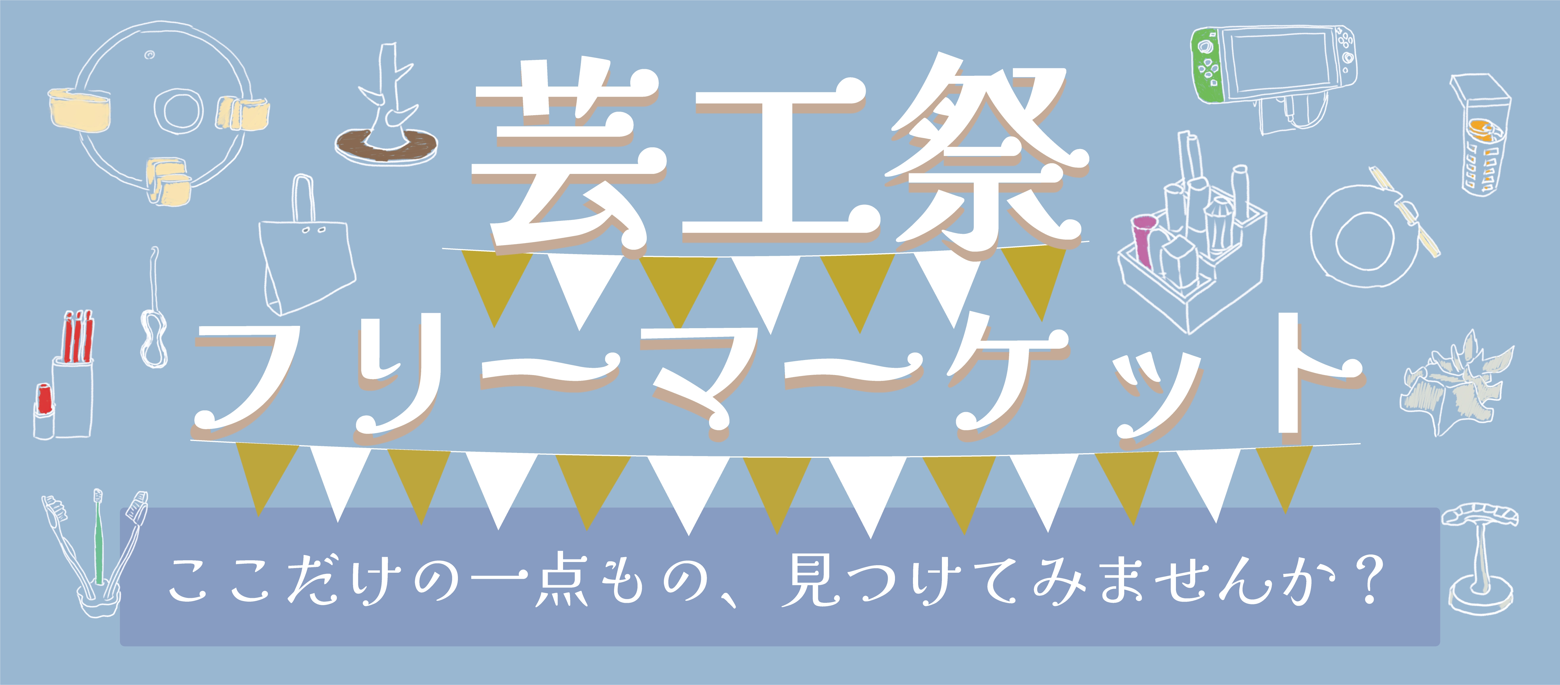 芸工祭フリーマーケットは学部生、院生が制作した一点ものの製品を販売するフリーマーケットです。販売する製品はプロダクトに留まらず多岐に渡っています。実際に制作した学生に質問をすることも可能です。芸術工学部で学んだ学生らの制作する商品をぜひご覧ください。