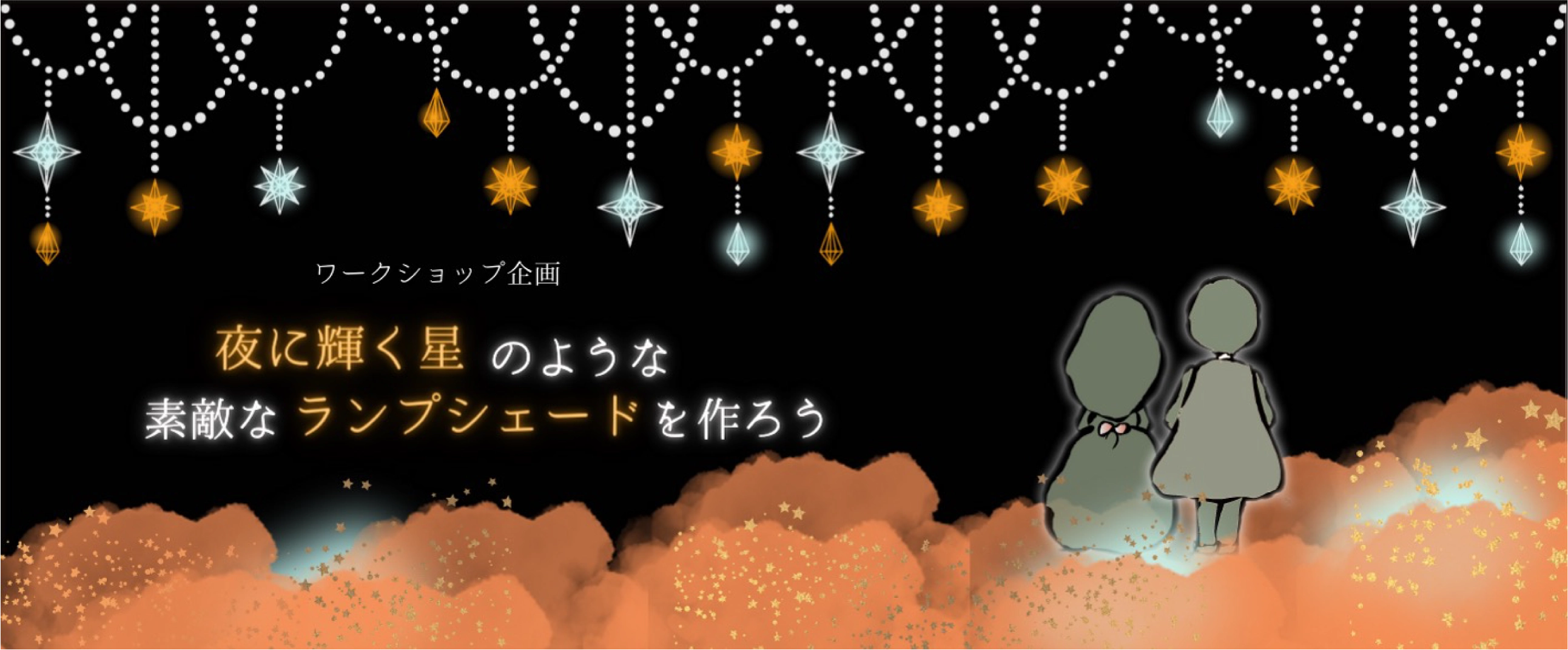 毎年大好評のワークショップ企画! 今年は夜に輝く星のような綺麗なランプシェードを作ります。 誰でも簡単に作ることができ、手ぶらで大丈夫です。 今までなかった当日参加枠もあります。素敵なランプシェードを楽しく作りましょう!